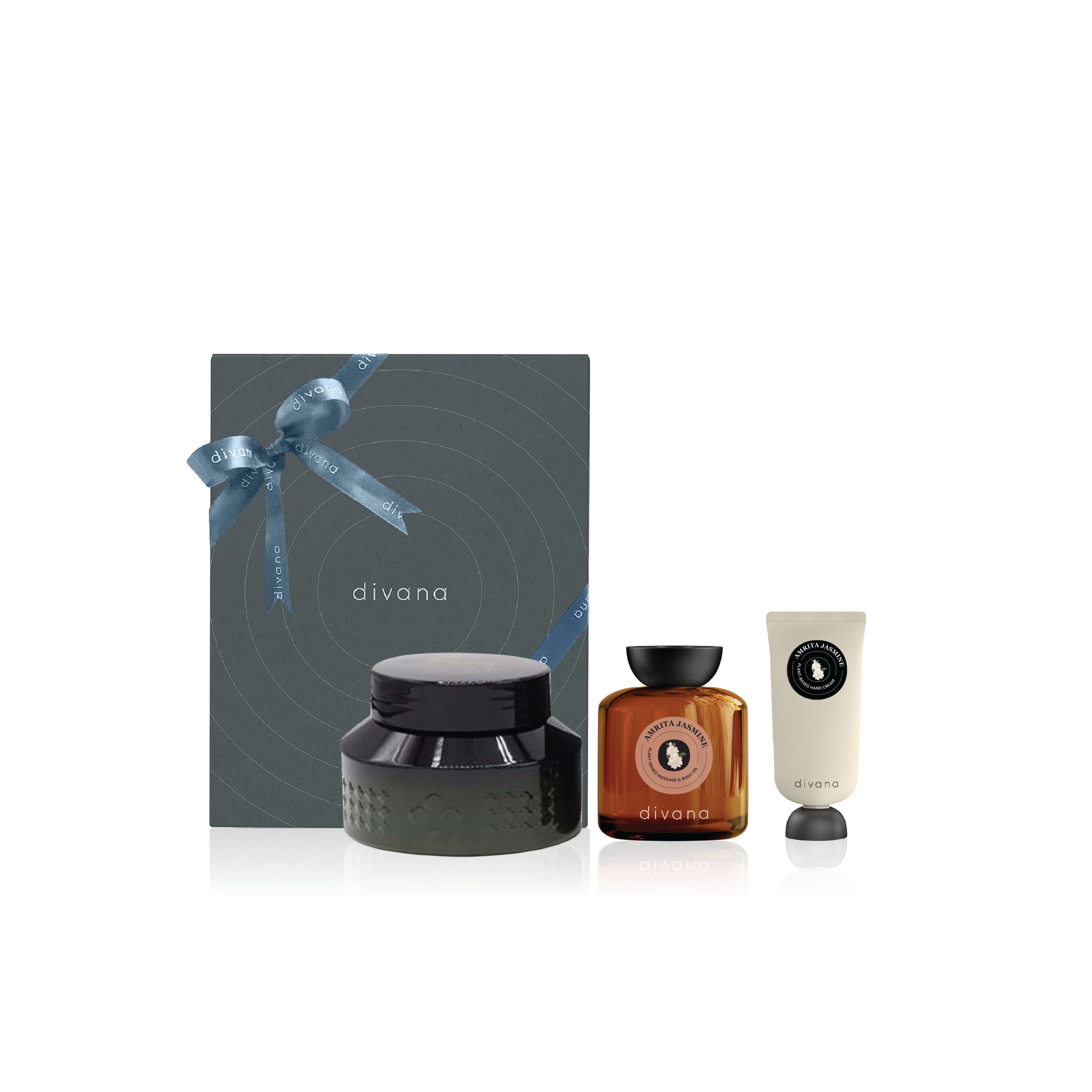 Divana Set Phenomenon Exotic Retreat Hand Cream comes in three different scents: Sunrise, Full Moon, and Rainbow. Each scent offers unique benefits and a luxurious hand care experience.