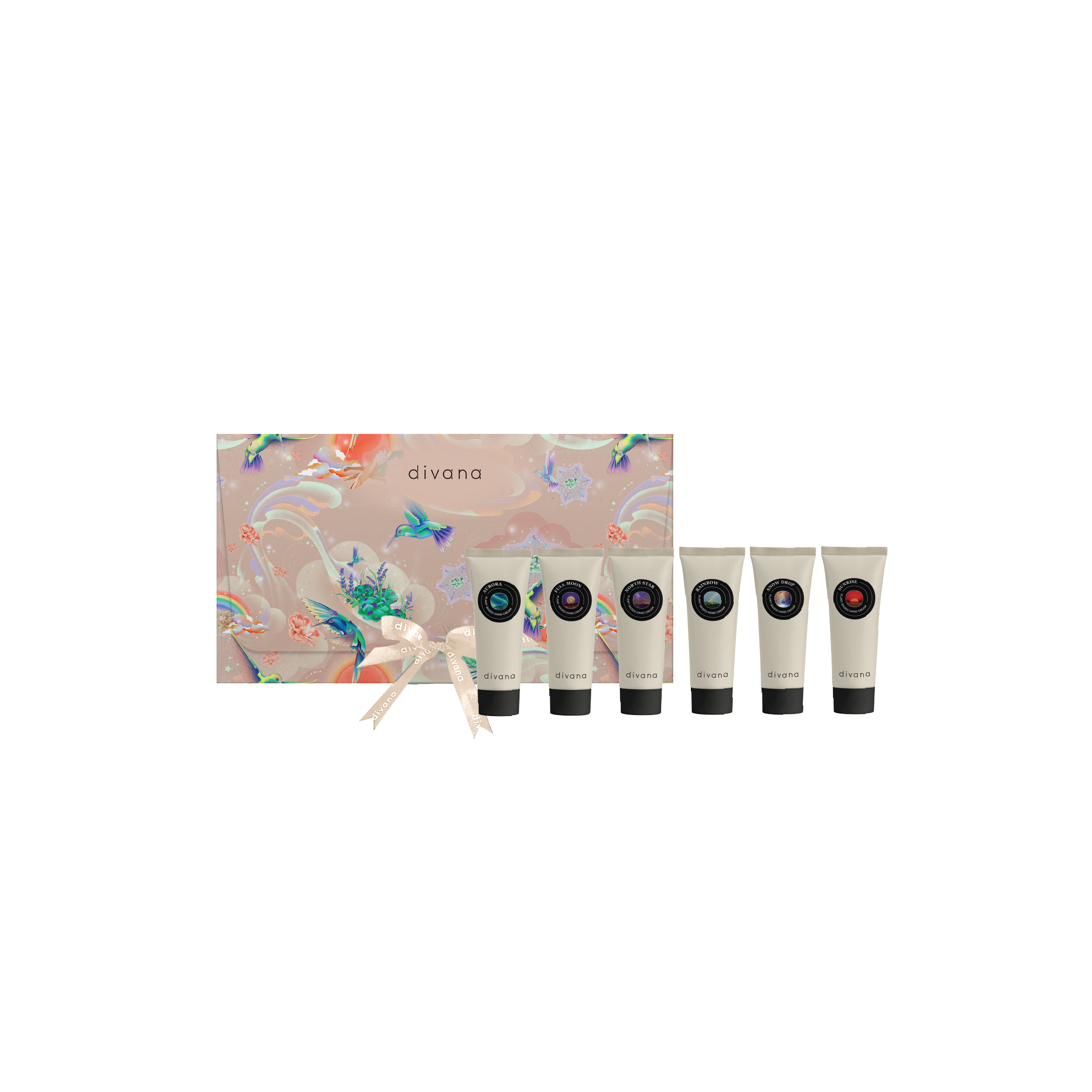 Divana Phenomenon 异域之旅手霜套装 50克,包含三种香氛:日出、满月和彩虹。每种香氛均提供独特功效与奢华护手体验。