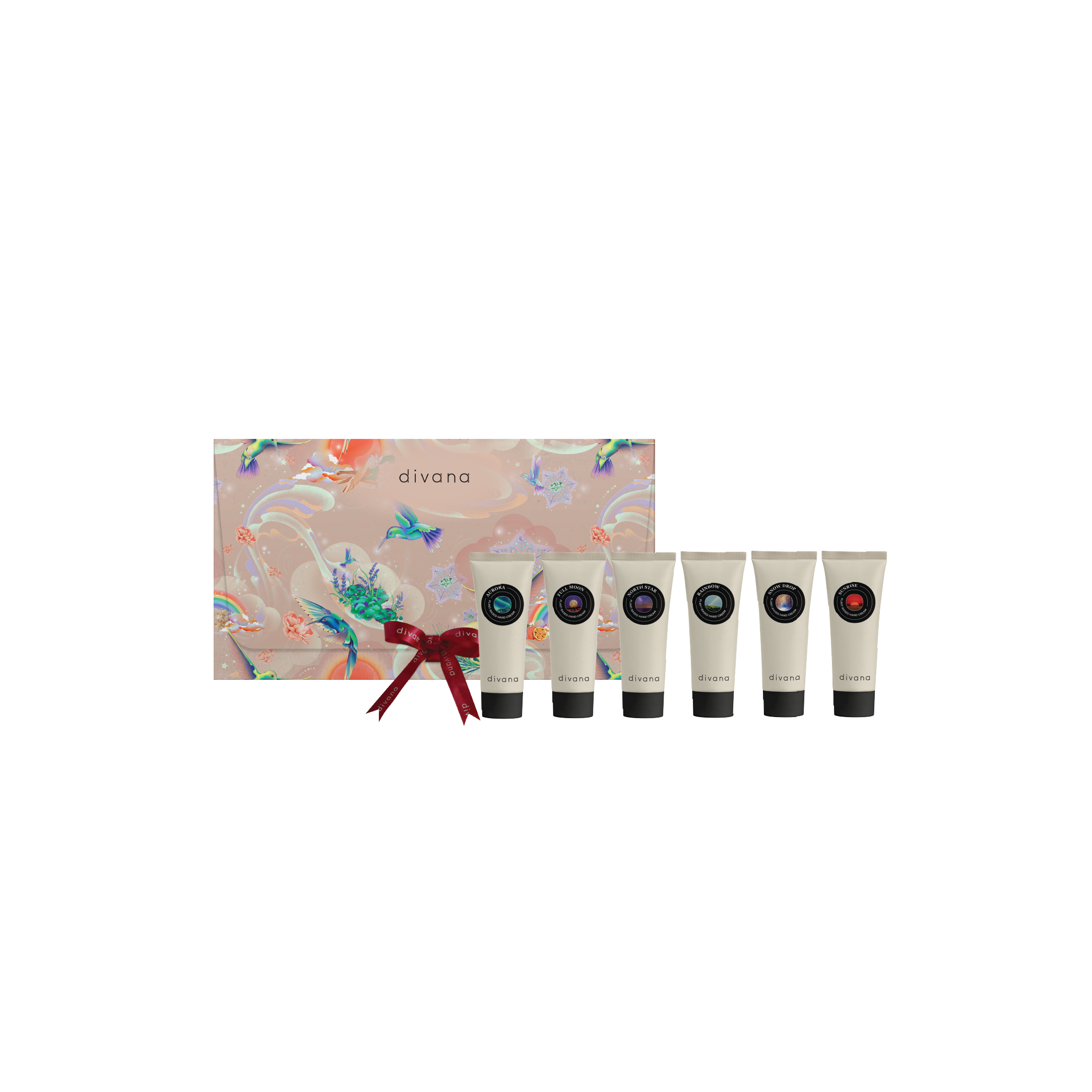Divana Phenomenon 异域之旅手霜套装 50克,包含三种香氛:日出、满月和彩虹。每种香氛均提供独特功效与奢华护手体验。